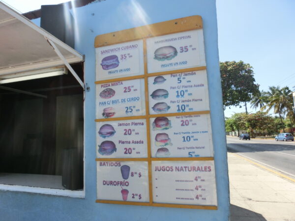 その店でハンバーガーを2ペソで買いました。大雑把に言うと200円くらいです。