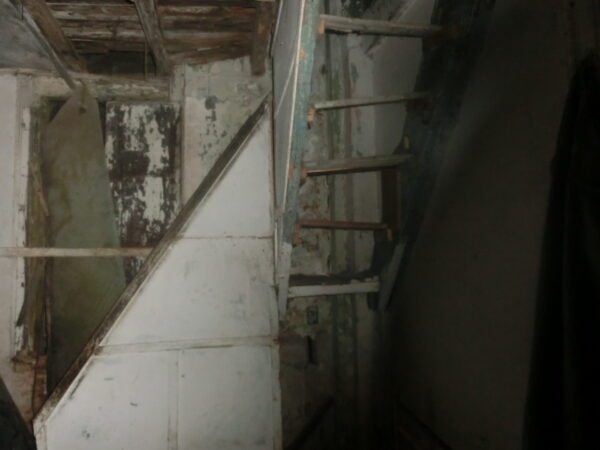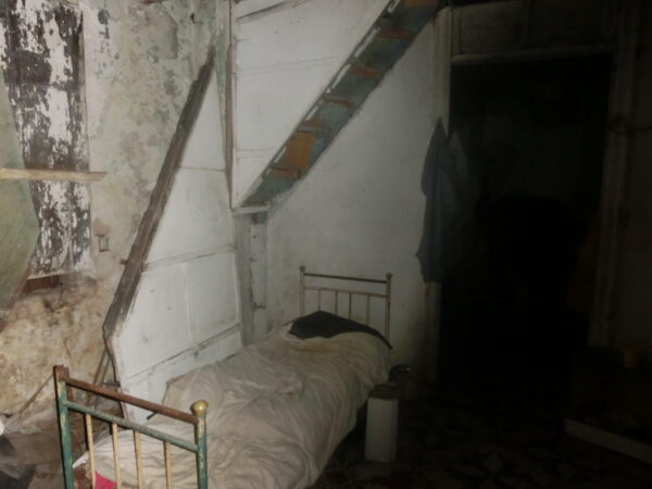 カビが生えた壁紙がはがれ、誰かが2階を歩くと天井からペンキの欠片が降ってきます。