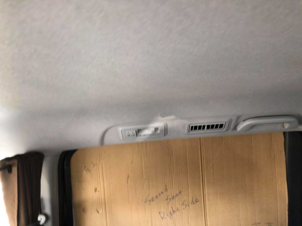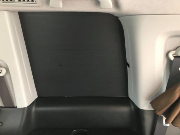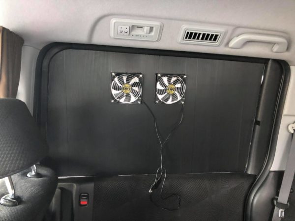 次に、換気扇付きのシェードをセカンドシートの窓に取り付けます。