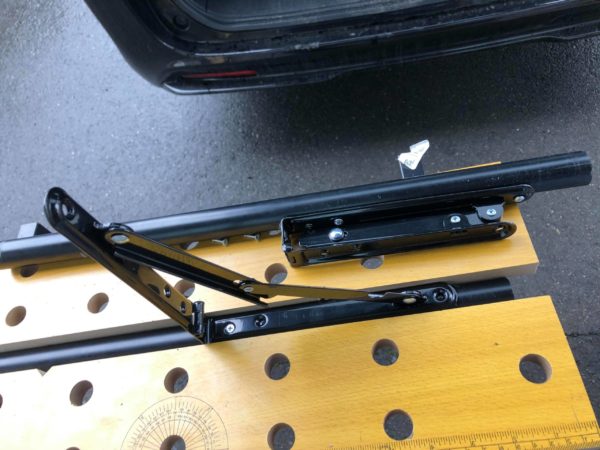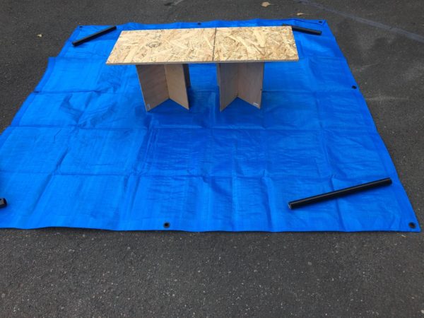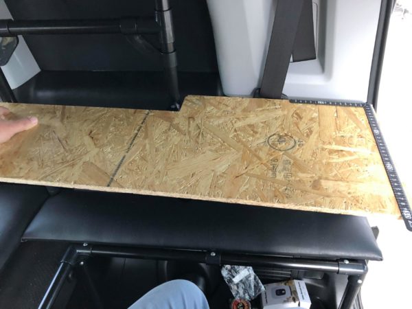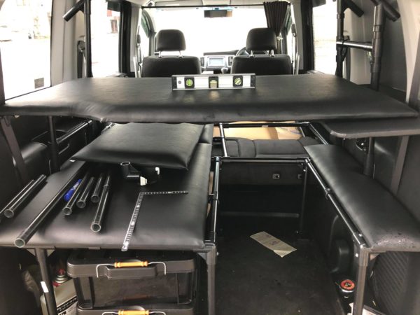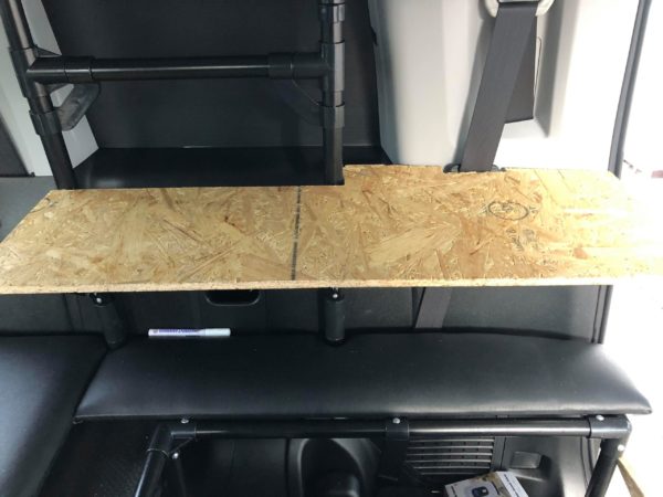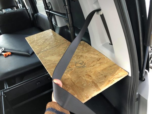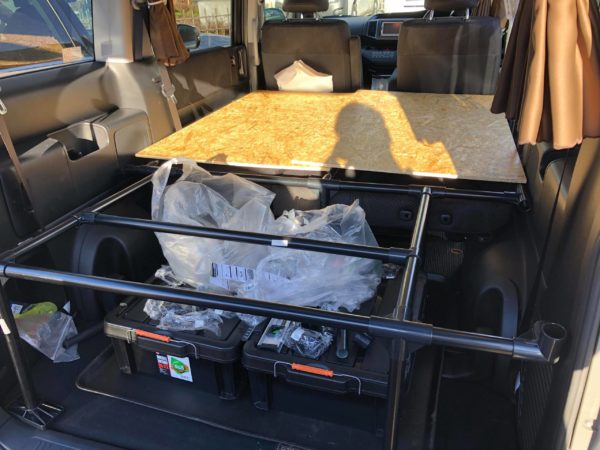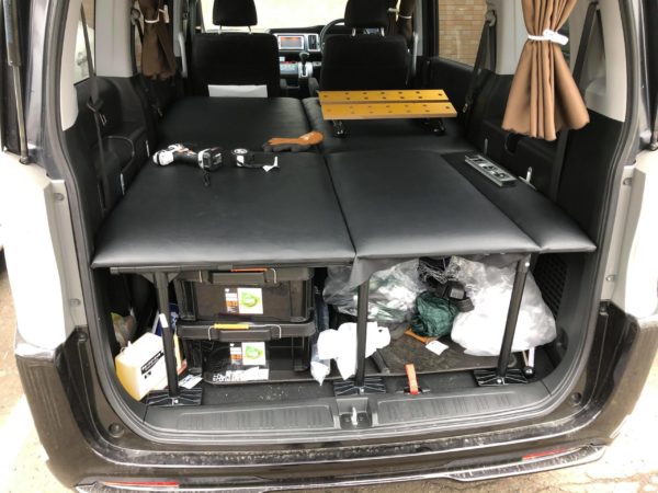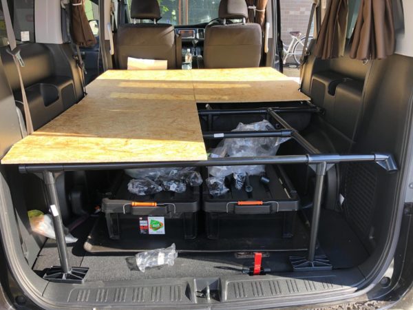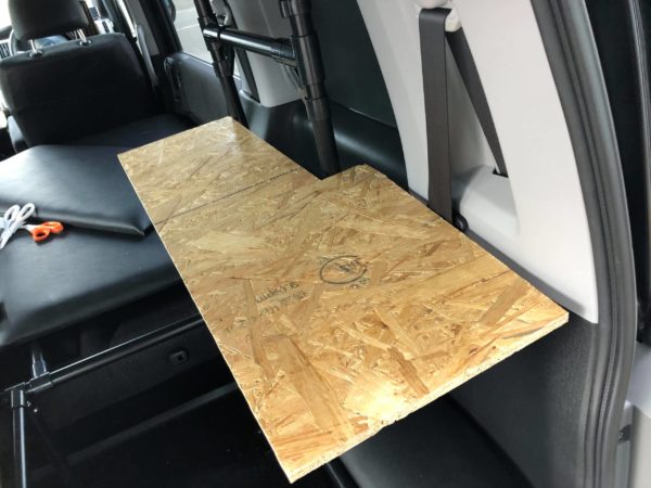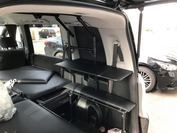 このテーブルを利用して、セカンドシートの上の大きなベッド天板を収納します。