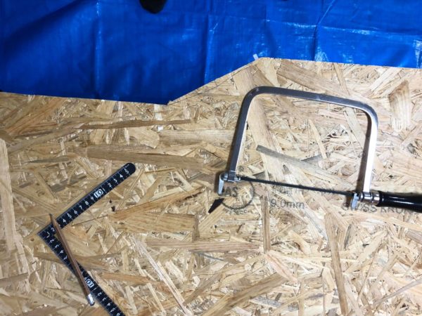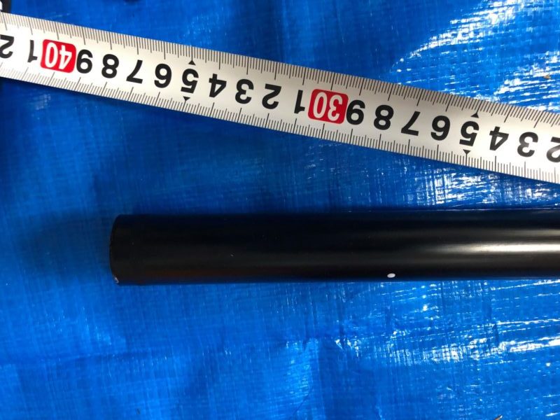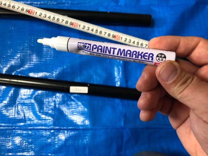 ブラックのイレクターパイプなので、白い油性マーカーで切断箇所に印をつけます。