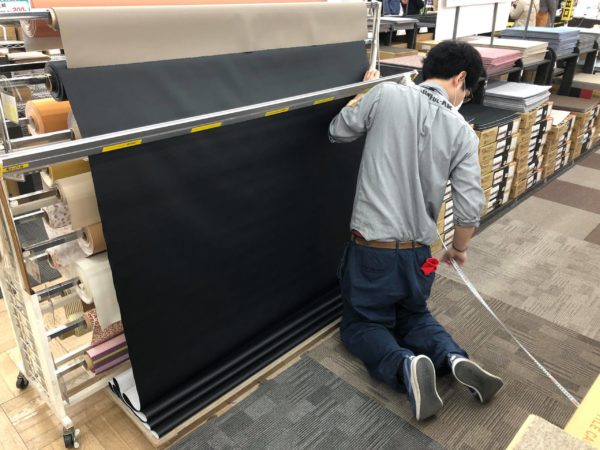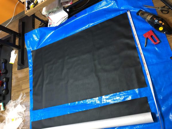 お次は黒の合皮シート。商品名はテーブルクロスですが、肌触りも良く伸縮性もあり理想的です。