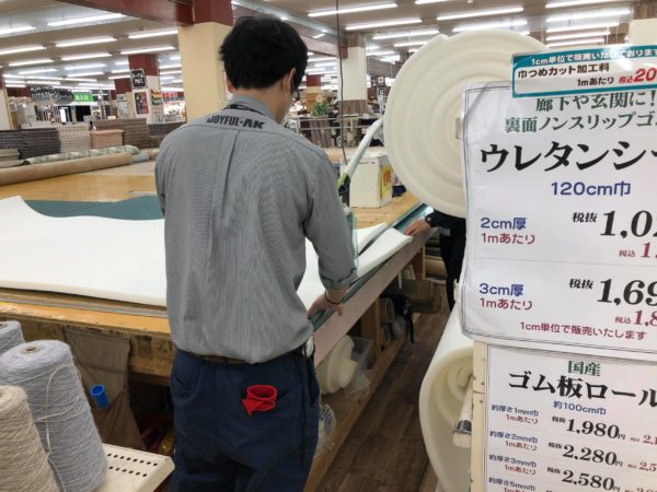 次に3cm厚のウレタンをカット。