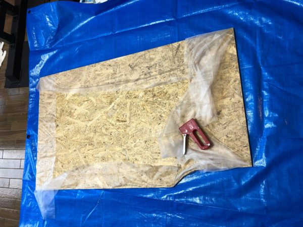 ウレタンと合皮シートでベッド天板を加工