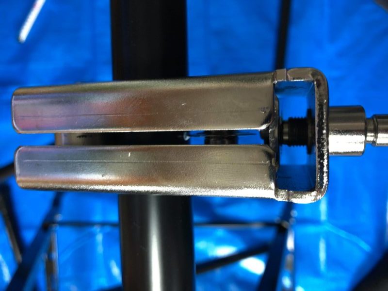 パイプを外して、折りたたみテーブルのステーを付けます。