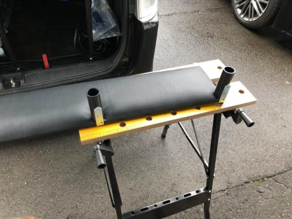 現着。ウレタンと合皮シートを張ると幅が増します。