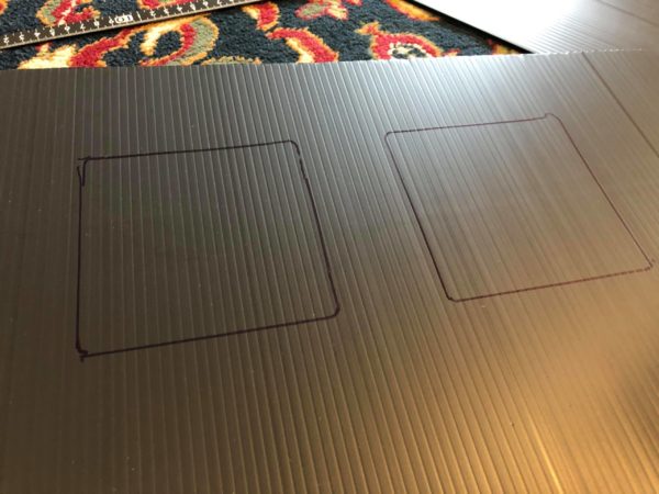 型を取った段ボールを利用し、プラダンを切り出します。