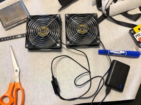 今回使う換気扇。モバイルバッテリーで動きます。