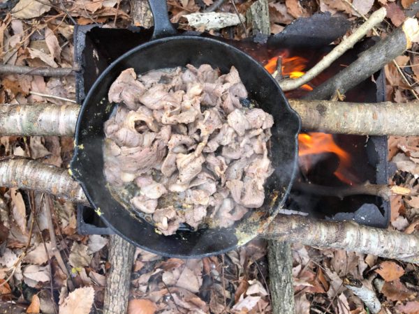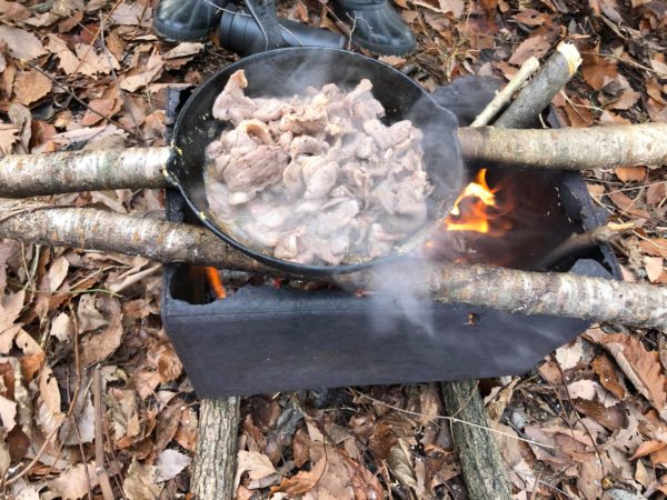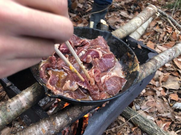 BBQコンロも炭もありませんが、森で見つけたものとアイディアで足りないものを補って焚火料理をしました!