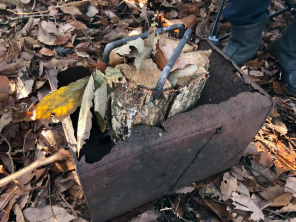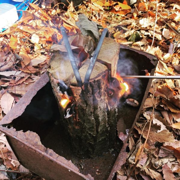 これも森で見つけたゴミで、底に空いた穴から直火で全体的に加熱しました。