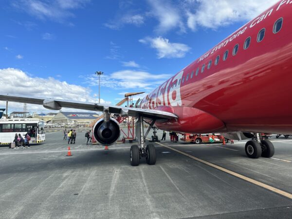 航空機まで移動するバスに乗ってAIR ASIAの機体に乗り込みました。