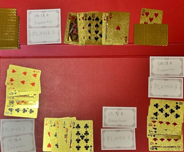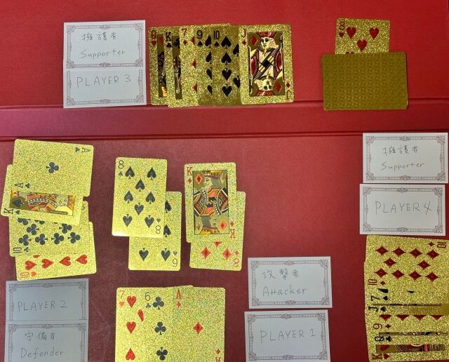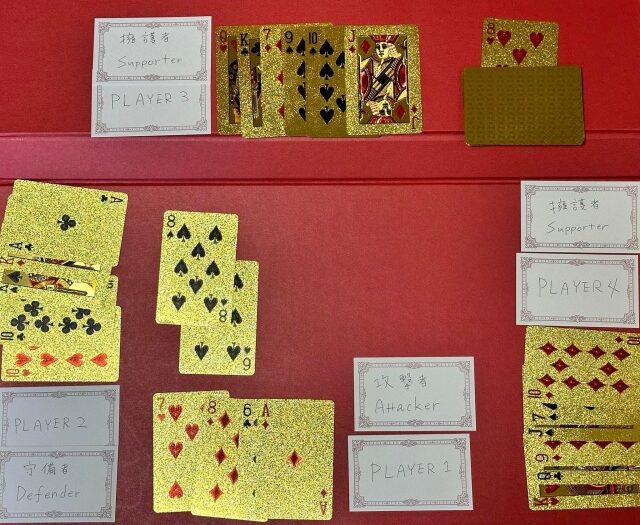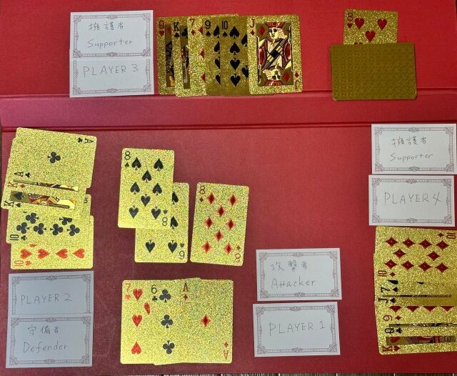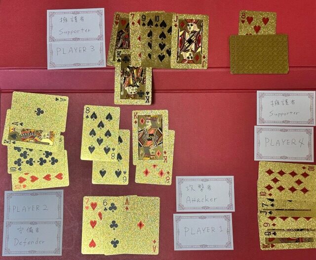 ここではプレイヤー3がクローバーのキングを出して守備者への攻撃に参加しています。