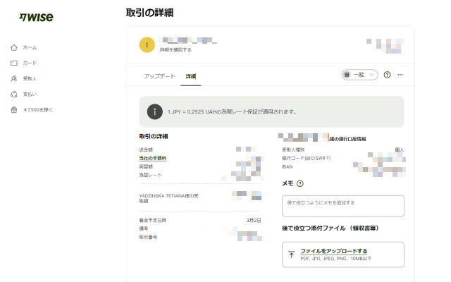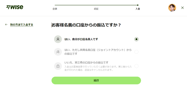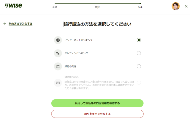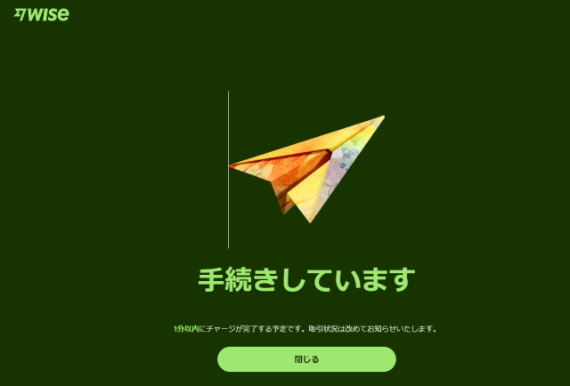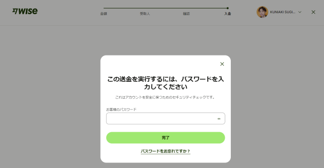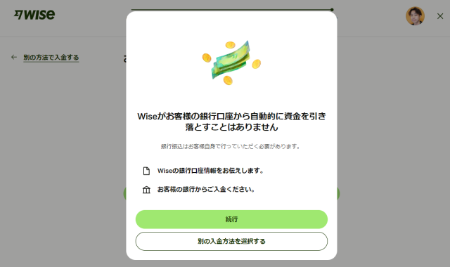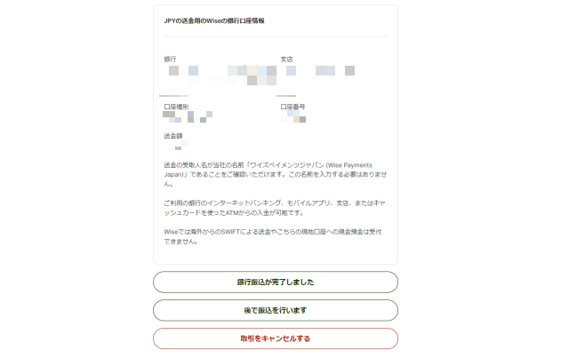 必ずユーザー側の手続きでWiseの指定口座へ振り込みする仕組みになっています。
