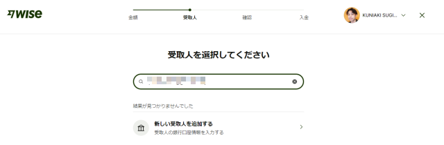 受取人がWiseのアカウントを持っていない場合は、「新しい受取人を追加」するへ進みます。