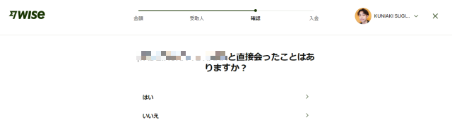 詐欺などを防ぐ確認として、受取人と直接会ったことはありますか?と質問されます。