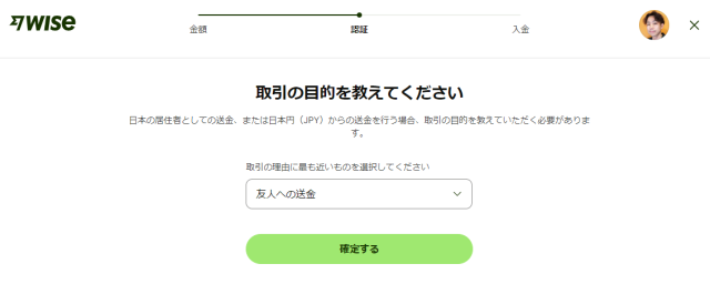 送金理由として「友人への送金」を選びました。