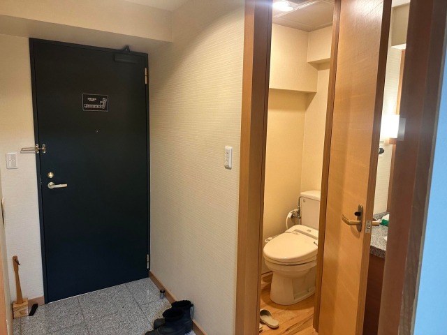 広々していている玄関から入ると左手にお手洗いと洗面所があり、右手にお風呂がありました。
