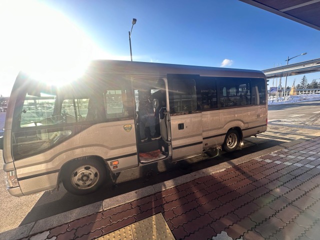 空港からホテルまでは特別なマイクロバスで移動をしました。
