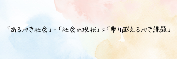 それは、「自分が考える、あるべき社会の姿」‐「社会の現状」=「乗り越えるべき課題」で捉えることです。
