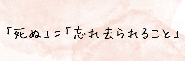 死ぬとは、肉体を失うことではなく「忘れ去られること」だと考えています。