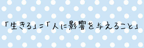 一言でいうと、生きるというのは「人に影響を与えること」だと考えています。