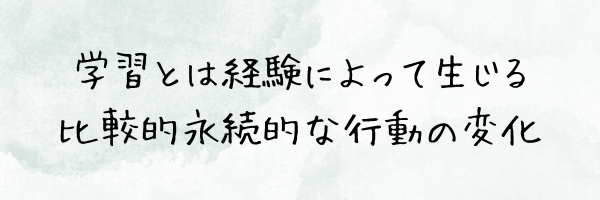 心理学において一般的に学習は「経験によって生じる比較的永続的な行動の変化」と定義されています。