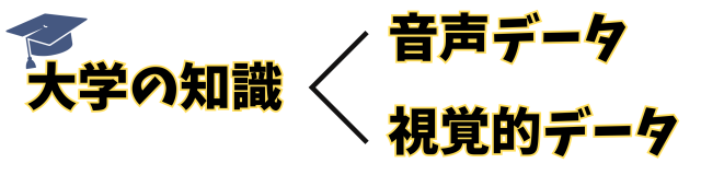 そして、大学の知識を切り崩すと音声データと視覚的データの2つに別けることができます。