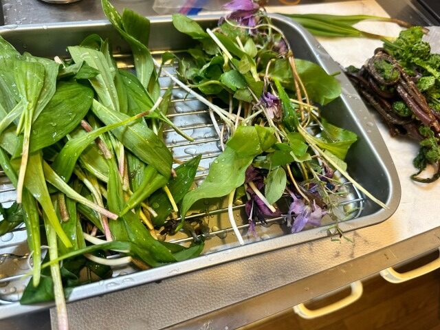 札幌に戻り、取れた山菜を全て水で洗いました。