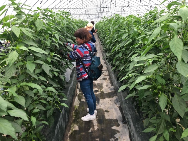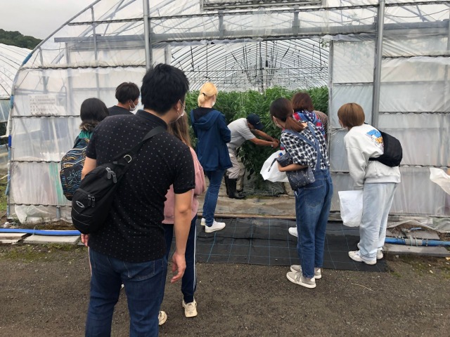 綺麗なビニールハウスの中にはピーマンやナス、パプリカなどが色鮮やかに育っていました。
