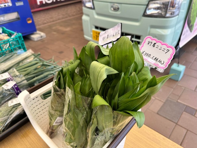 大きな葉っぱの行者ニンニクが1束300円。