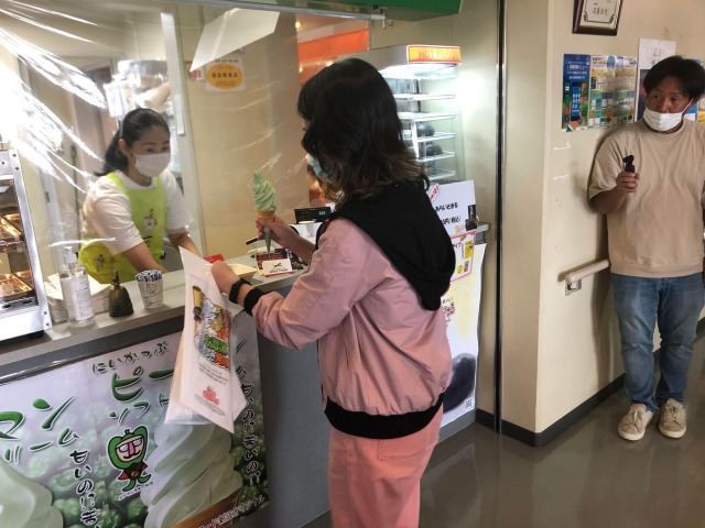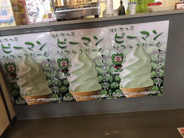新冠町の道の駅にはピーマンソフトクリームが売られています。
