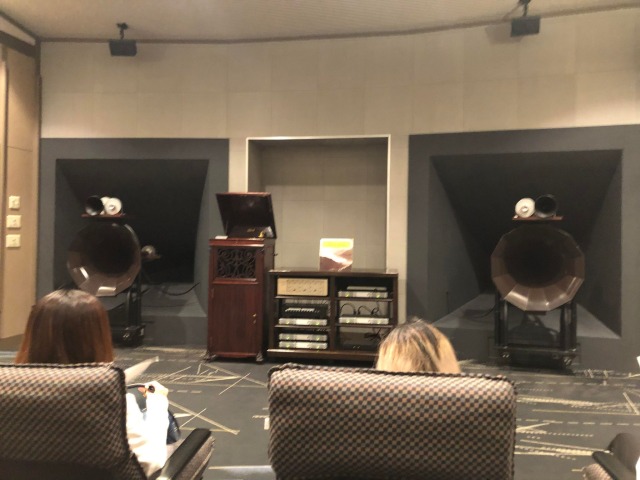 レコードホールでは実際にとても高価な蓄音機の音を体験することができました。