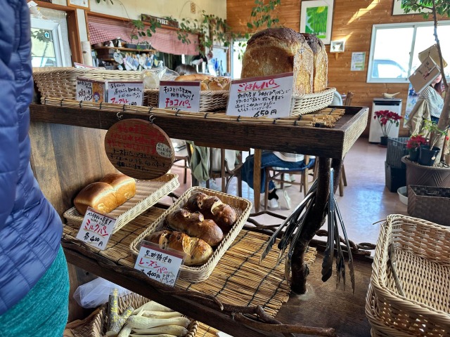 レジの手前には水のかわりに牛乳を使ったこだわりの自家製パンがうられていました。