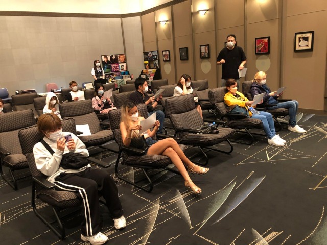 馬たちは円陣を組んでおとなしく日本語の説明を聞いている様子です。