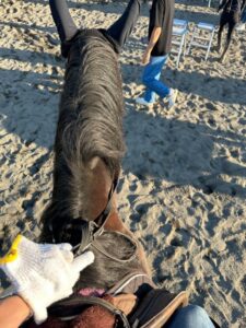 その後に、タヅナの引き方やムチの使い方を教わり徐々に慣れていきます。