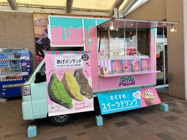 可愛らしいキッチンカー「あげパンサンド」と「スイーツドリンク」。