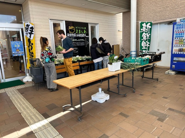 にいかっぷキッチンの前には採れたての新鮮野菜が売られています。