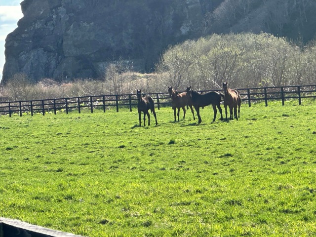 この牧場は5頭の馬が悠々自適に過ごしており、見るものを和ませてくれます。