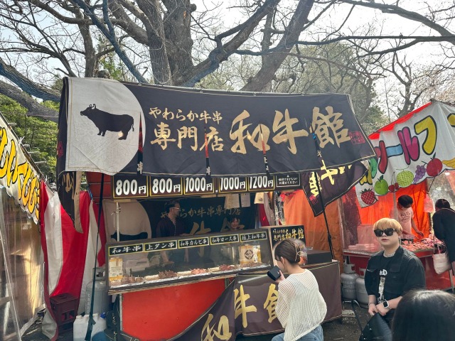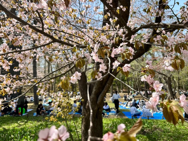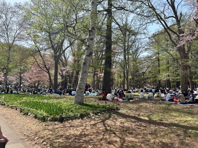 座る場所を探す間も、桜は人々を楽しませてくれます。