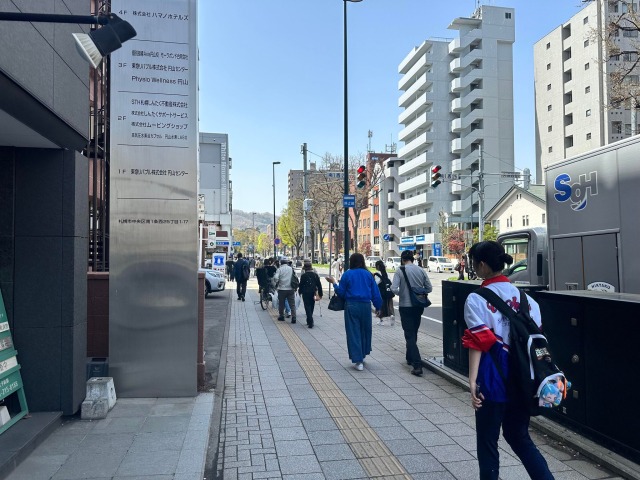 自転車を停めた地下鉄円山公園駅前はいつになく多い人通り。