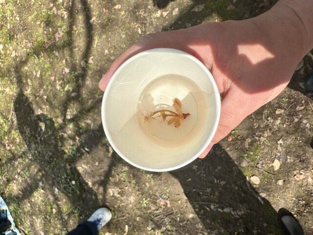 一輪の桜がひとつ入ったお茶を飲みながら見る桜は一味違いました。