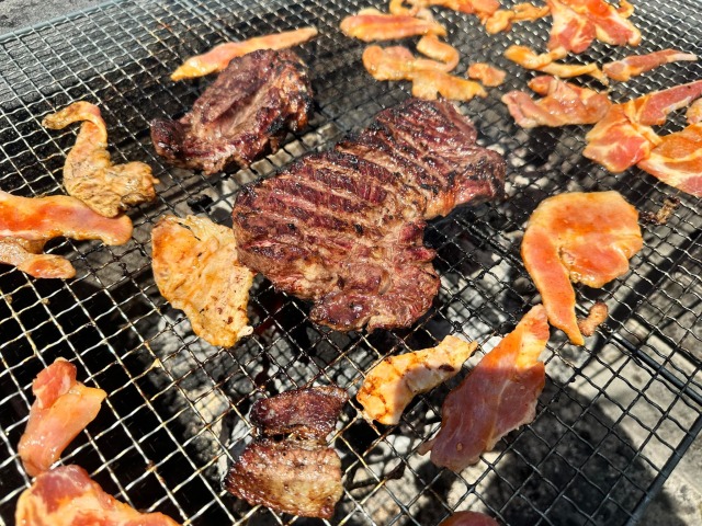 BBQコンロのサイズがかなり大きいため、用意した網が小さく買いなおしに行くことになりました。