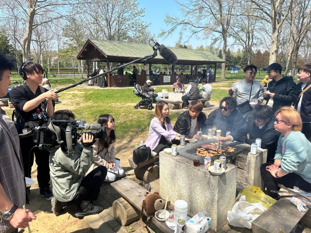 楽しくBBQをしているとテレビ局の取材陣がインタビューをしてくれました。