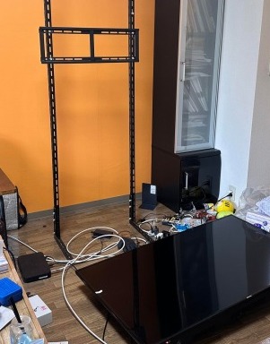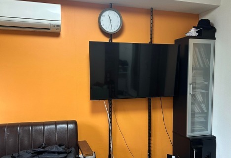 そして、高い位置に大型テレビを持ち上げて固定するのはなかなかハードでした...!