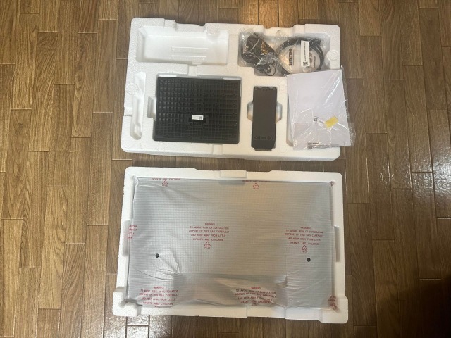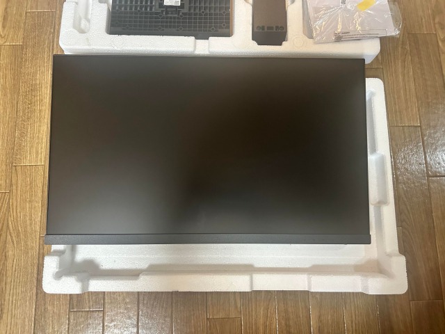 2つの発泡スチロールに挟まれる形でモニターが入っていました。