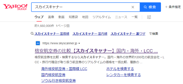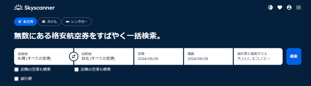 ブラウザでスカイスキャナーと検索します。
