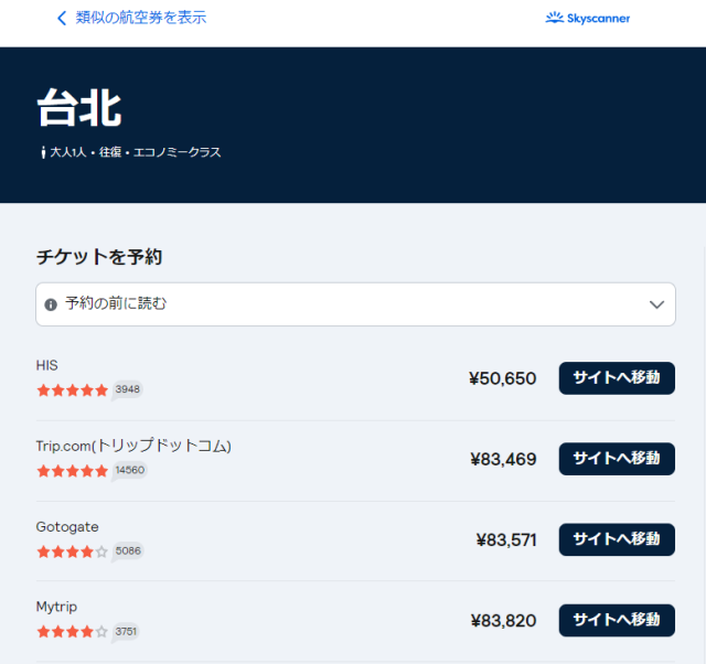 それでは、まずはスカイスキャナーで航空券を比較してみましょう!