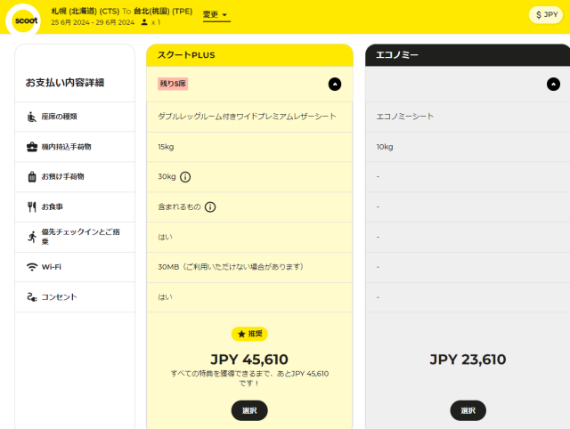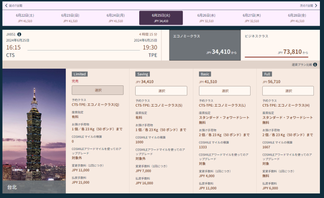 機内持込手荷物10キロのみのエコノミーで台湾→新千歳間51,376円は高いですよね。