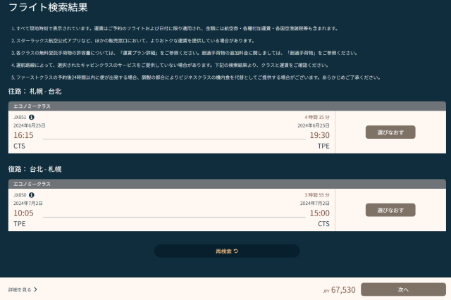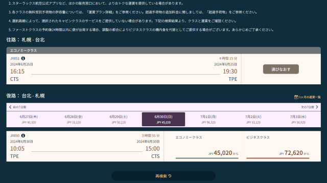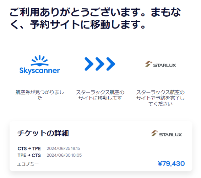 今回、札幌-台湾の往復航空券をスターラックス(STARLUX)公式サイトで予約しました!
