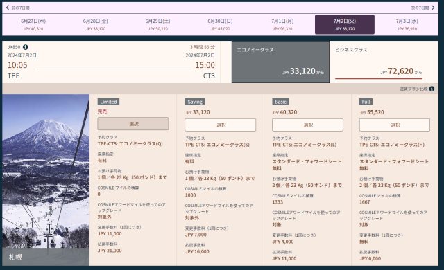 | Limited | Saving(エコノミークラス) | Basic | Full | |